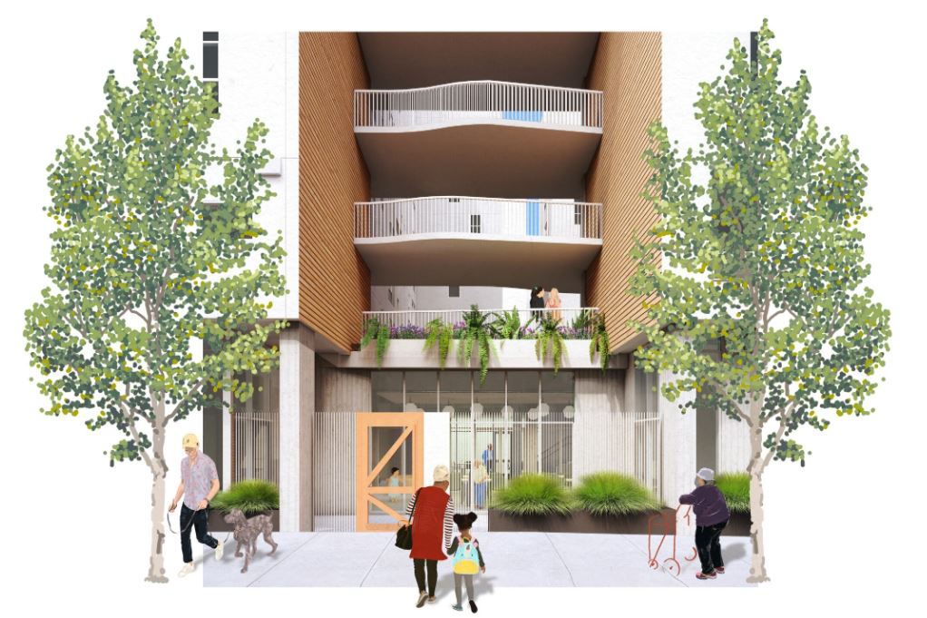 Located at the intersection of the Civic Center, Hayes Valley and Tenderloin neighborhoods, 850 Turk will bring 92 new affordable homes (inclusive of 1 onsite manager unit) in an amenity-rich area, serving individuals and families earning up to 60% AMI. The 8-story midrise building will feature thoughtfully designed residential spaces, landscaped courtyards, and shared indoor and outdoor amenities to foster community and well-being. The development will also include 30 replacement parking spaces for the California Employment Development Department, a continuing collaboration with State Department partners. With this project, MidPen aims to strengthen the neighborhood’s vitality, while addressing San Francisco’s urgent need for affordable housing near key civic and transit hubs.